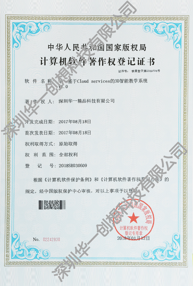 • 計(ji)算機(jī)軟件著作(zuò)權登記證-1
